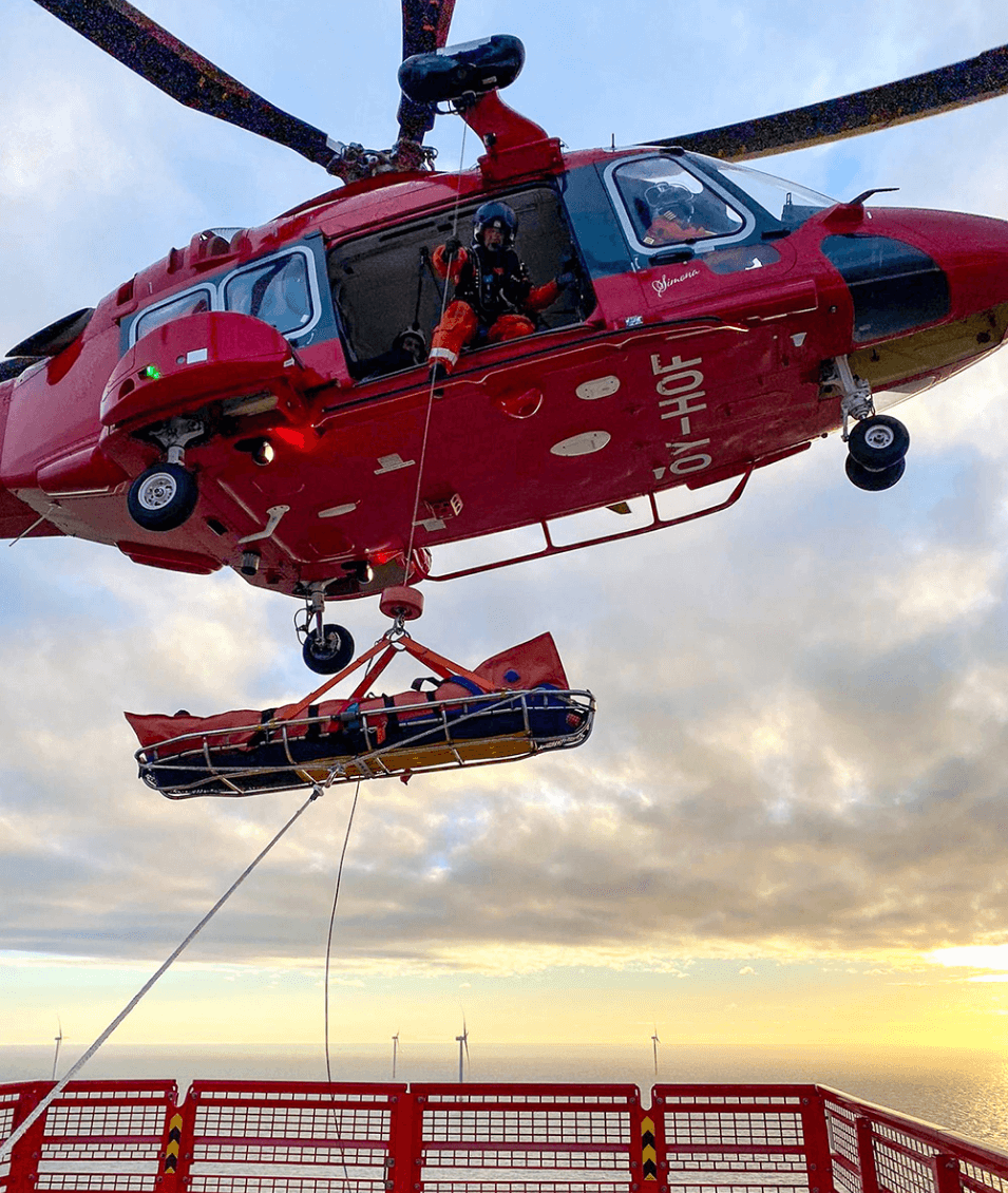 Do you need to evacuate one or more crew members? We provide the all-important link between your offshore site and an onshore clinic or hospital. We make sure that the evacuation is handled quickly and with optimal patient care during the flight.