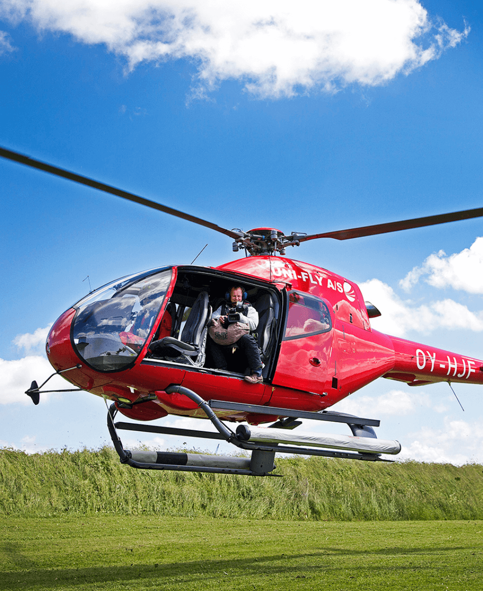 A helicopter gives you a great overview, lets you easily coordinate direction, height, and speed with the pilot, and lets you hover in a specific spot if you need to take a closer look or film your asset. In addition, you can cover several assets and great distances in a relatively short time.